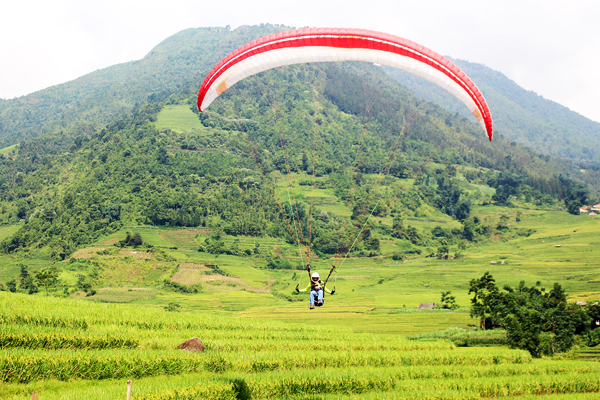 Chương trình biểu diễn dù lượn tại xã Mường Hum (Bát Xát) được nhiều người quan tâm.